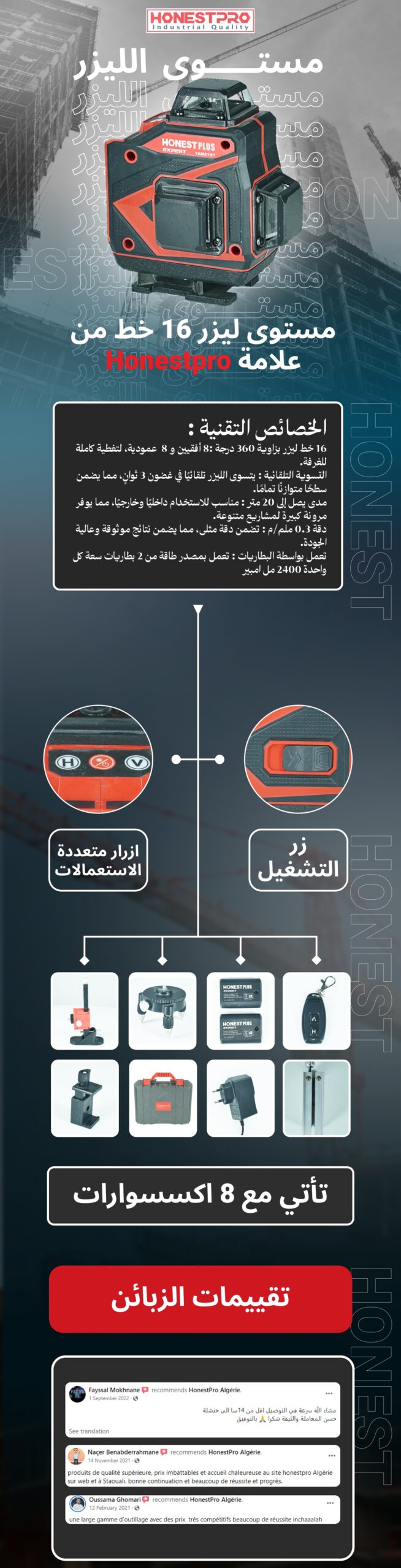 Bienvenue dans notre boutique spécialisée en vente d’équipements de la marque HonestPro en Algérie. En tant que distributeur officiel de la marque HonestPro, nous vous proposons une sélection exclusive de produits de haute qualité. Que vous soyez un professionnel exigeant ou un particulier passionné par le bricolage, notre magasin offre une gamme complète d’outils fiables et performants. Parcourez notre inventaire pour découvrir des équipements pour tous les besoins, allant des outils à main précis aux solutions innovantes d’outillage électroportatif. Faites confiance à la qualité HonestPro pour vous accompagner dans toutes vos tâches. Nous sommes fiers de vous servir et de vous offrir des produits de pointe pour vous faciliter le travail et répondre à vos exigences.